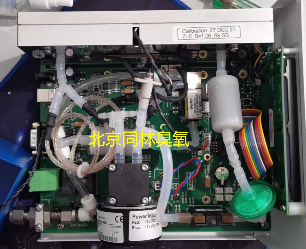 有兩個內(nèi)部臭氧洗滌器(如圖2)。一、臭氧尾氣洗滌器(照片中LCD顯示屏下方),用于在泵前洗滌臭氧,保護泵免受高臭氧損壞;另一個用于臭氧測量。不需要更換臭氧廢氣洗滌器,除非它明顯地將材料泄漏到泵中。臭氧測量洗滌器連接到電磁閥的入口和“長端”。該臭氧測量洗滌器應每連續(xù)運行六個月(約 4,000 小時)更換一次;否則,建議每年更換。要更換內(nèi)部臭氧洗滌器/過濾器,請卸下將頂蓋固定到位的六個螺釘,從而卸下頂蓋。通過斷開連接到每一端的管道并在其位置連接一個新的管道,可以輕松更換洗滌器。