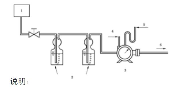 B.2.5.2.1 將臭氧化氣的管道插入到空白洗氣瓶中,使用新鮮的臭氧沖洗管道。然后,將臭氧清洗后的管道與測定洗氣瓶連接,并立即使用濕式流量計(jì)開始記錄體積。